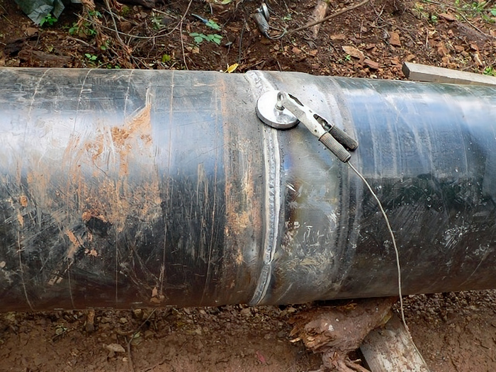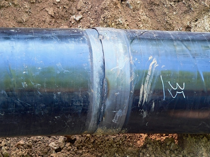 soudures ont été recouvertes par une bande de protection thermorétractable.