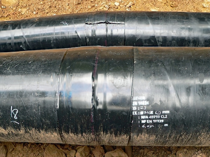 Les tuyaux ont été emboîtés et soudés entre eux par une équipe de soudeurs