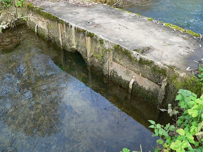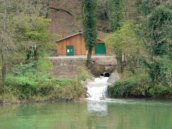 La première conduite forcée, d'un diamètre de 550 millimètres, alimente la micro-centrale hydroélectrique. La seconde, d'un diamètre de 700 millimètres, sert de conduite de décharge et se déverse directement dans le Doubs lors de fortes eaux.