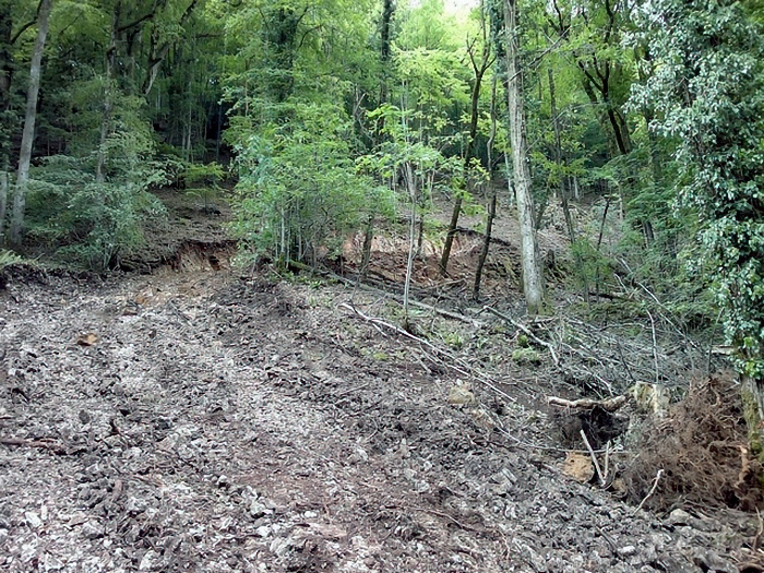 La taille d'origine du puits n° 2 (50 x 50 centimètres) ne lui permet d'évacuer qu'un faible débit. En cas d'inondations, la seconde galerie se met alors sous pression et l'eau n'a d'autre choix que de s'évacuer par une paroi amont du boyau (en fait, une ancienne "fenêtre"). C'est notamment à cause de lui que de nombreux glissements de terrains ont lieu depuis 1991.