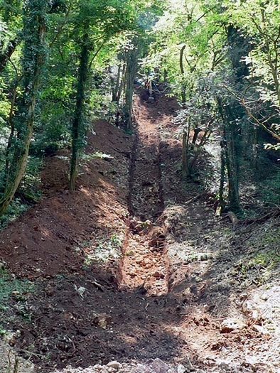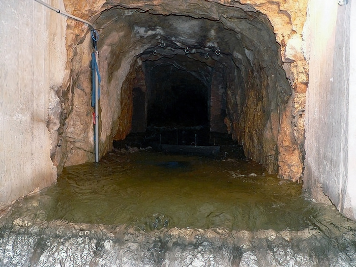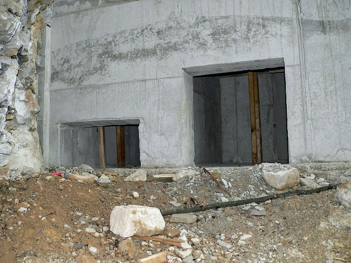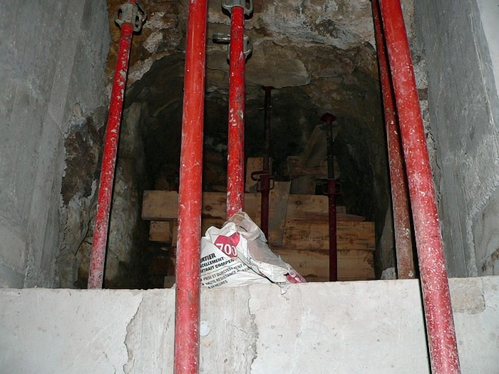 • la présence de "fenêtres" qui furent utilisées pour l'évacuation des déblais lors de sa construction et qui ont été mal rebouchées.