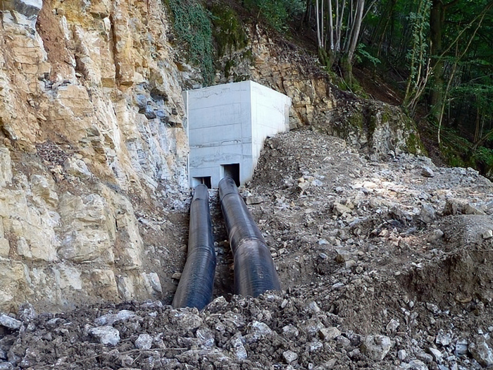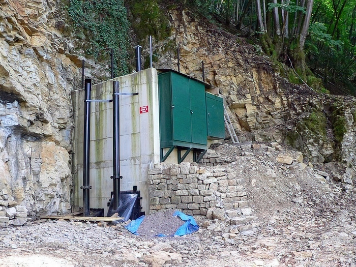 Sur la commune de Laissey, un collecteur et deux conduites forcées ont été construits pour alimenter une micro-centrale hydroélectrique. Les deux galeries actuelles ont été sécurisées et partiellement imperméabilisées afin d'éviter les pertes et une conduite de décharge se jetant dans le Doubs a été ajoutée afin de limiter leurs mises en charge.