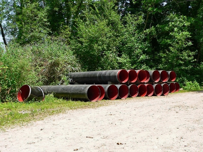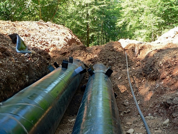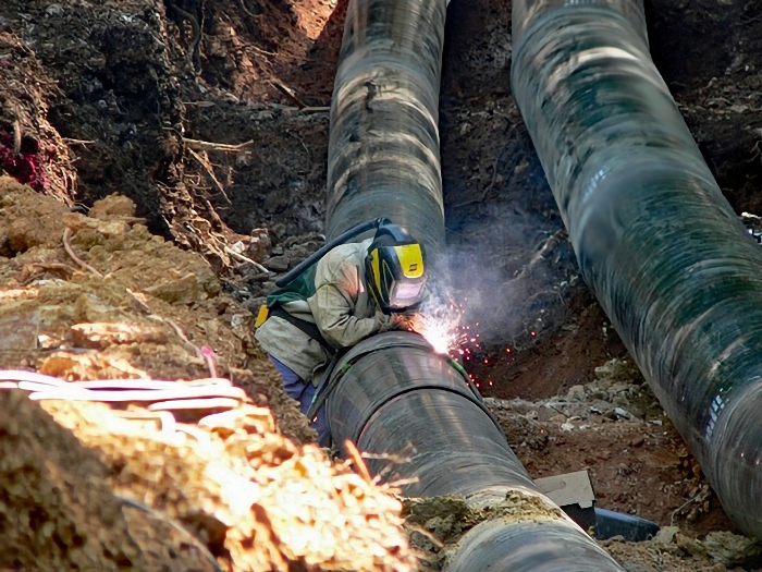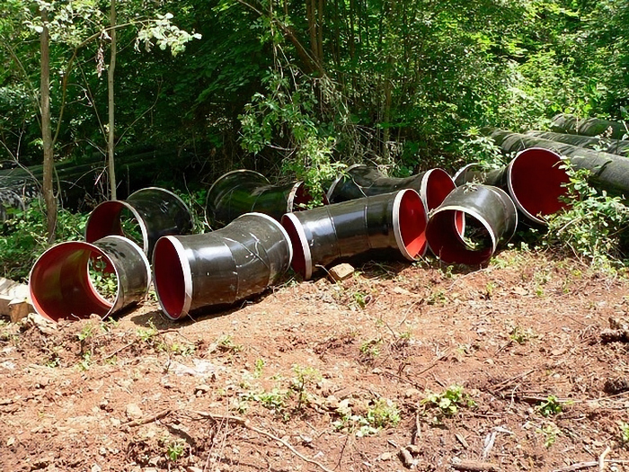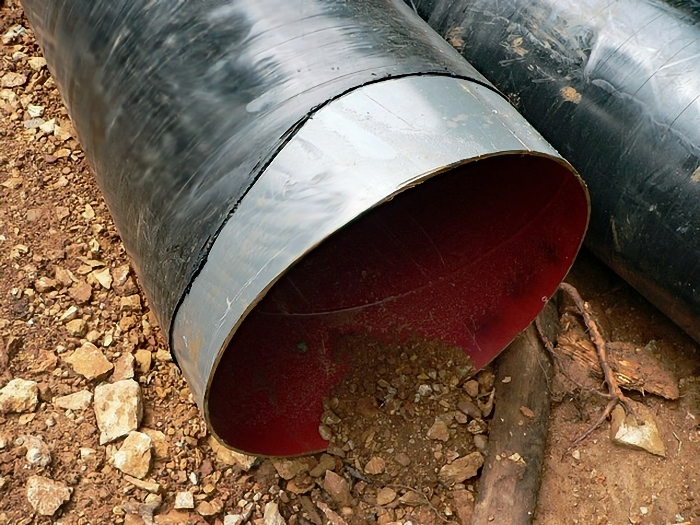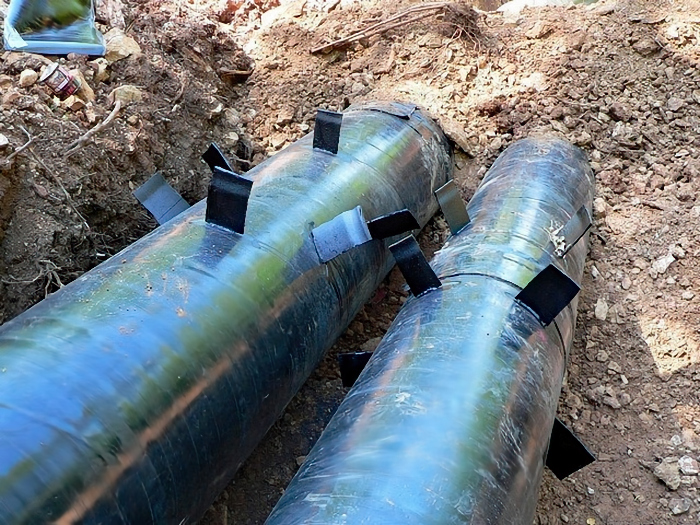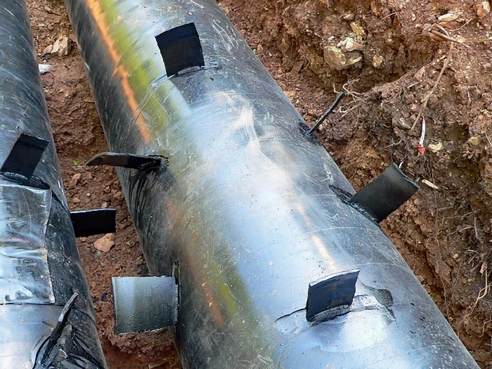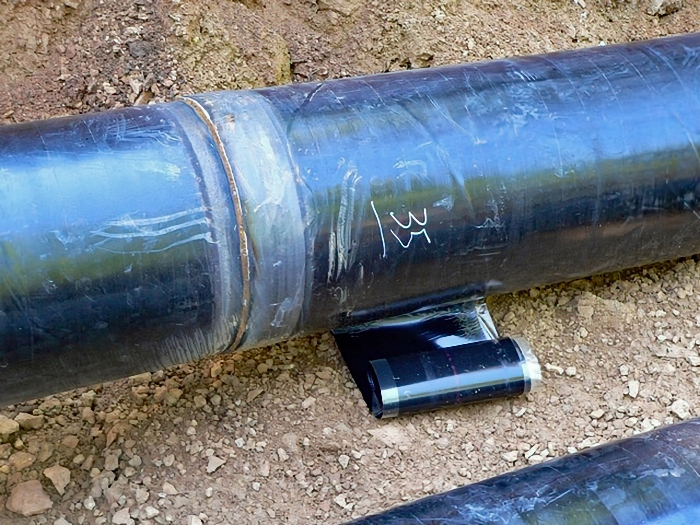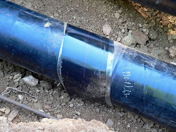 Les tuyaux ont été emboîtés et soudés entre eux par une équipe de soudeurs spécialisés. Afin d'assurer une protection contre le temps et la corrosion, les soudures ont été recouvertes par une bande de protection thermorétractable.