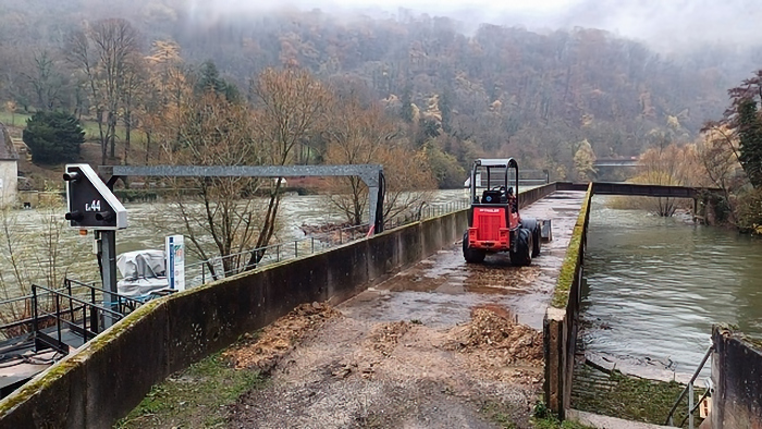 Novembre 2023 à mars 2024 : démontage de la passerelle de l'écluse de Laissey