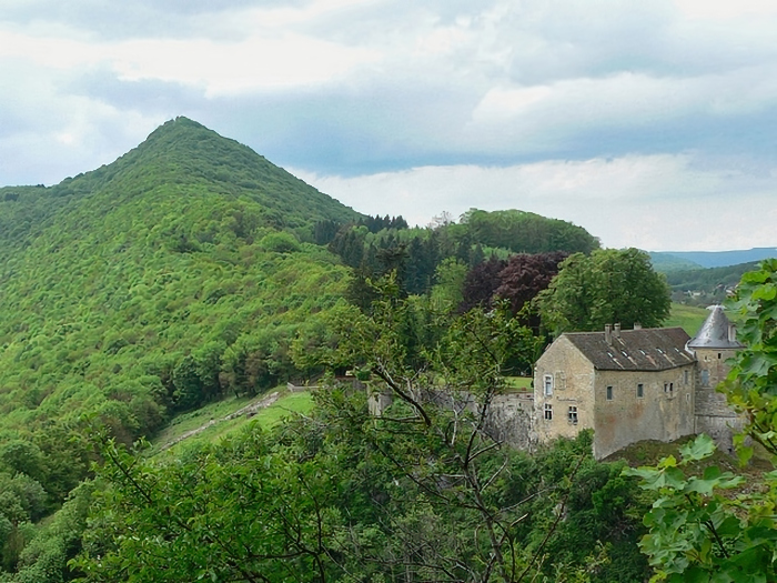 la côte de Champlive : le village est très encaissé dans la Vallée du Doubs avec un différentiel d'altitude de 250 mètres (15 mai 2005).